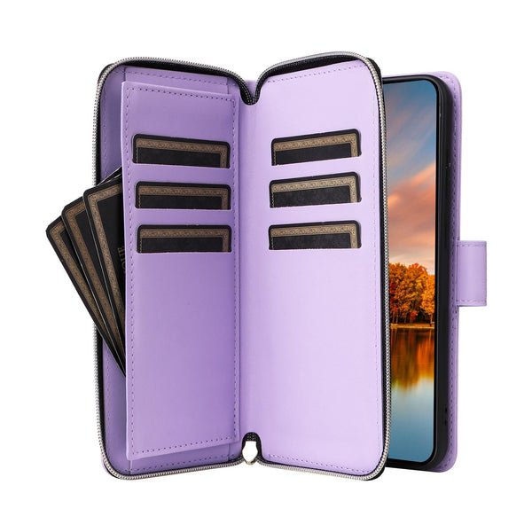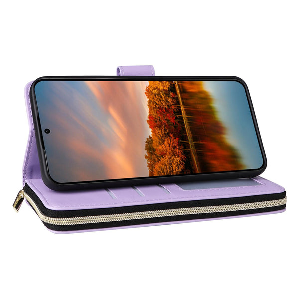 For Samsung Galaxy S24 FE 5G Nine-card Slots Zipper Wallet Bag Leather Phone Case(Purple)
