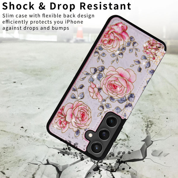 For Samsung Galaxy S24 FE 5G Printed Double Buckle RFID Anti-theft Phone Case(Pastoral Rose)