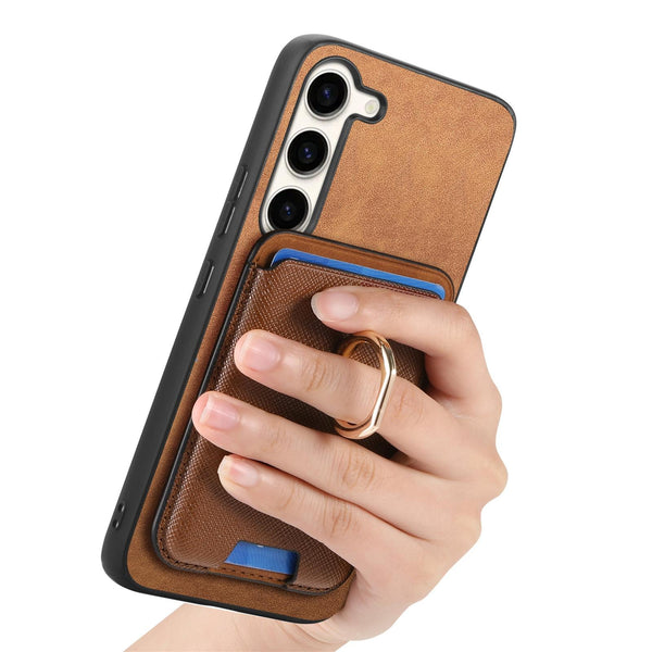 For Samsung Galaxy S24 FE 5G Retro Cross Leather Ring Vertical Insert Card Bag MagSafe Phone Case(Brown)