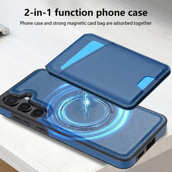 For Samsung Galaxy S24 FE 5G Skin Feel Detachable Card Bag Magsafe Phone Case(Blue)