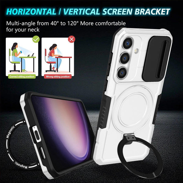 For Samsung Galaxy S24 FE 5G Sliding Camshield MagSafe Holder TPU Hybrid PC Phone Case(Black White)