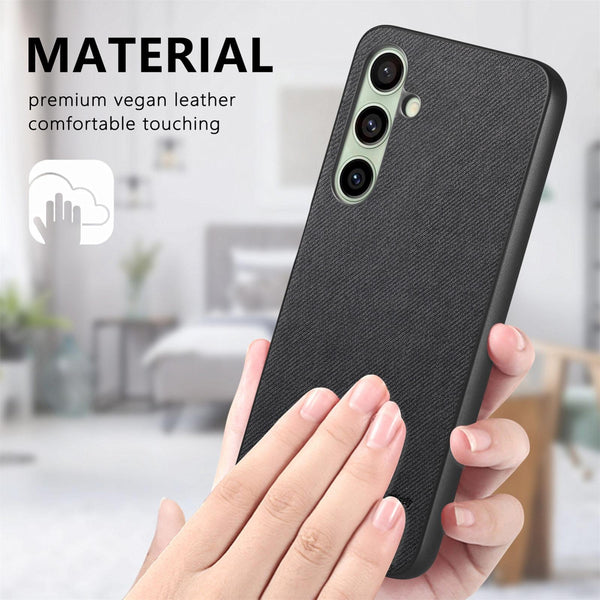 For Samsung Galaxy S24 FE 5G Twill Fabric Leather Skin Back Phone Case(Black)