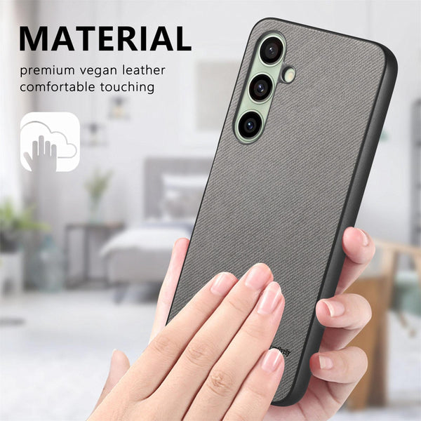 For Samsung Galaxy S24 FE 5G Twill Fabric Leather Skin Back Phone Case(Gray)