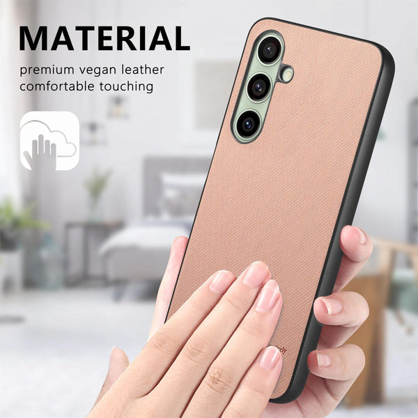 For Samsung Galaxy S24 FE 5G Twill Fabric Leather Skin Back Phone Case(Pink)