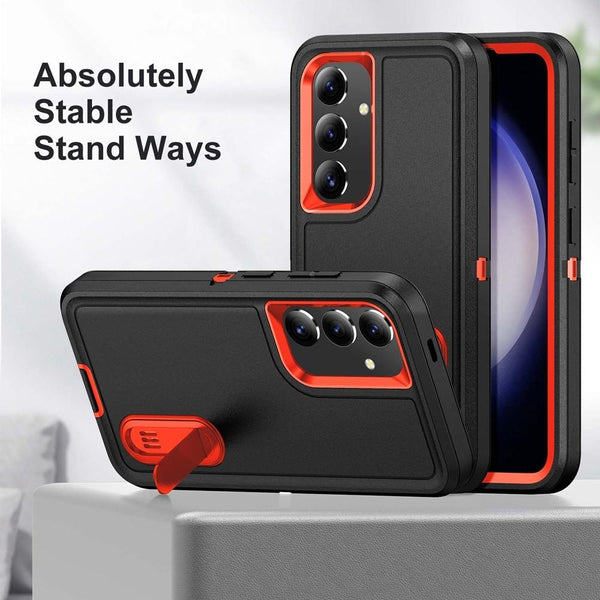 For Samsung Galaxy S24 / S25 5G Rugged PC Hybrid Silicone Phone Case with Holder(Black+Orange)