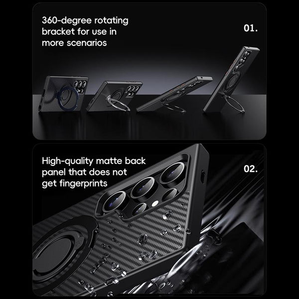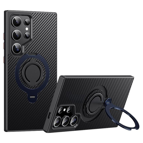 For Samsung Galaxy S24 Ultra 5G Carbon Fiber MagSafe Phone Case with 360 Degree Rotating Holder(Black Blue)