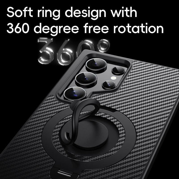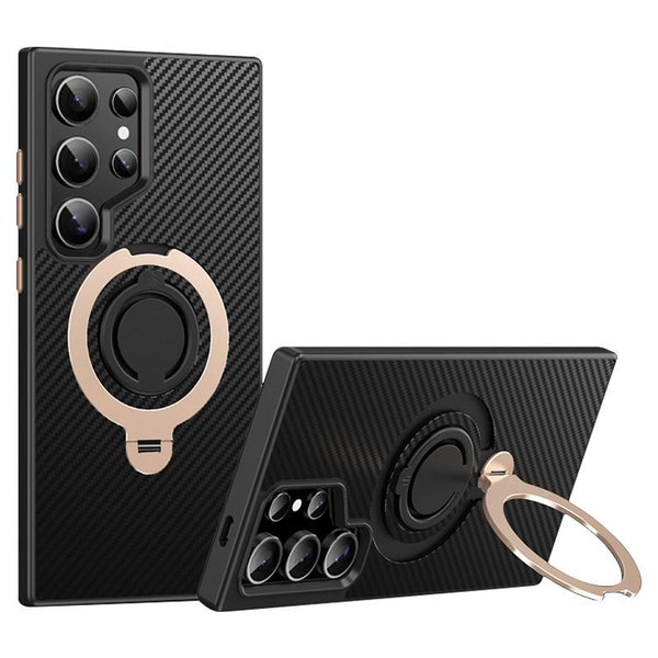 For Samsung Galaxy S24 Ultra 5G Carbon Fiber MagSafe Phone Case with 360 Degree Rotating Holder(Black Gold)