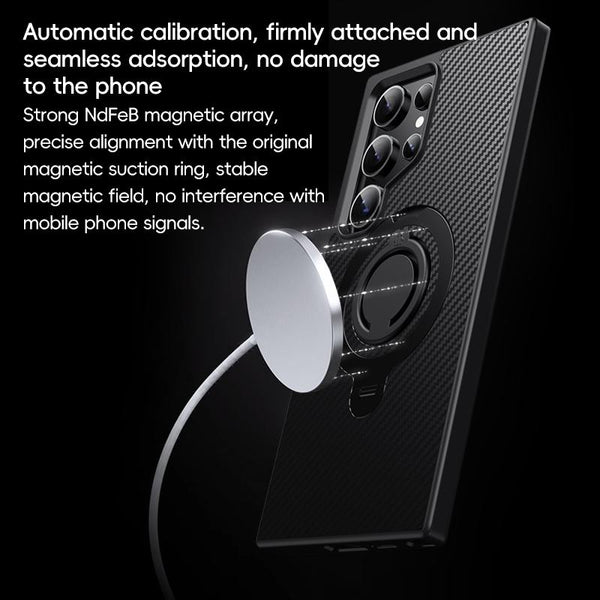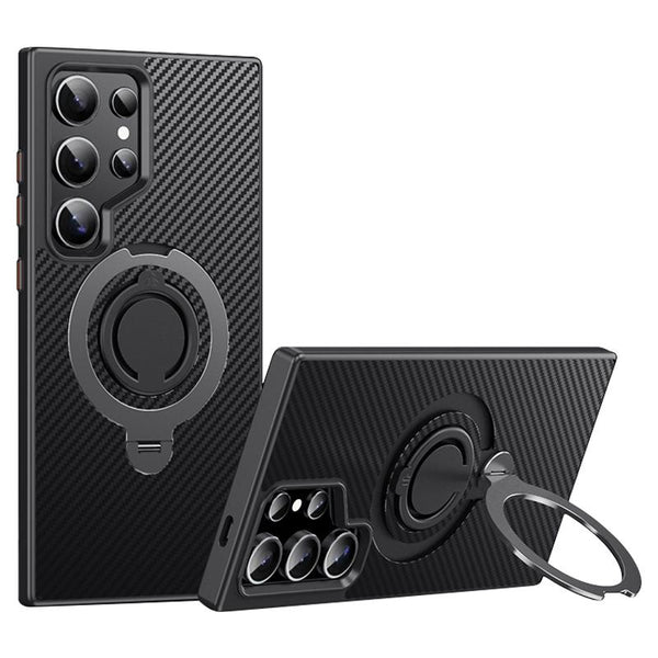 For Samsung Galaxy S24 Ultra 5G Carbon Fiber MagSafe Phone Case with 360 Degree Rotating Holder(Black Grey)