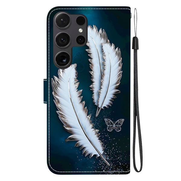 For Samsung Galaxy S24 Ultra 5G Crystal Texture Colored Drawing Leather Phone Case(White Butterfly Feathers)