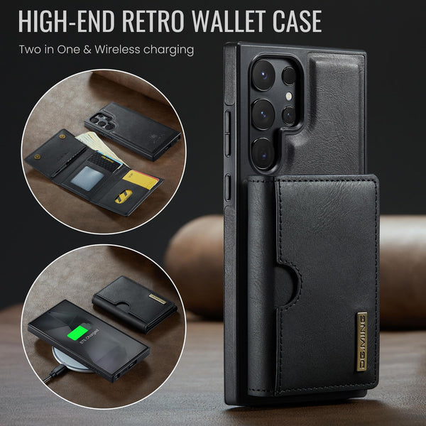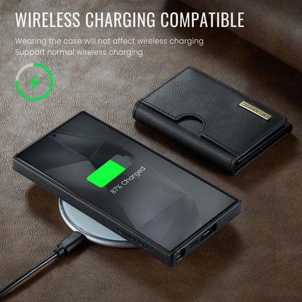 For Samsung Galaxy S24 Ultra 5G DG.MING M6 Series RFID Tri-fold Card Bag Removable Leather Phone Case(Black)