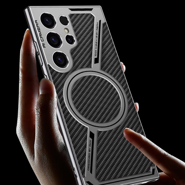 For Samsung Galaxy S24 Ultra 5G GKK Integrated Electroplating Leather Z-Shape MagSafe Phone Case(Black)