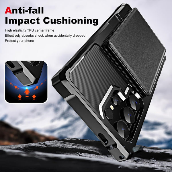 For Samsung Galaxy S24 Ultra 5G Horizontal Flip Card Bag Holder Leather Phone Case(Black)