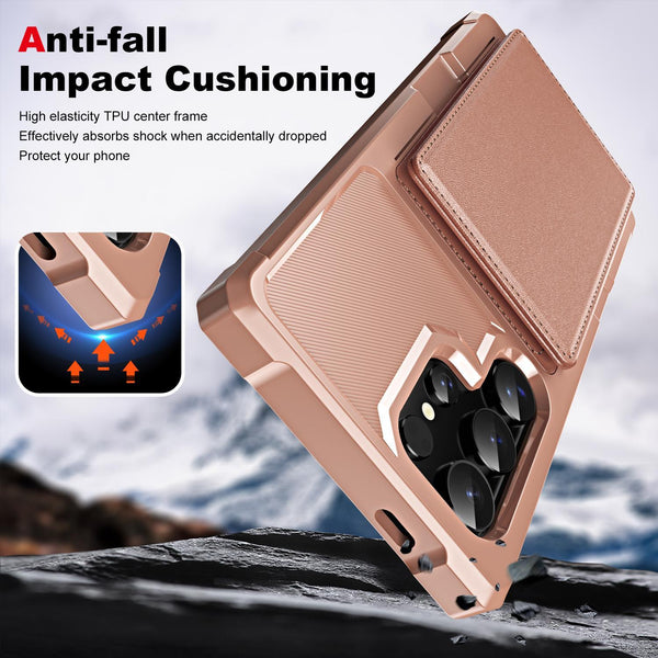 For Samsung Galaxy S24 Ultra 5G Horizontal Flip Card Bag Holder Leather Phone Case(Rose Gold)