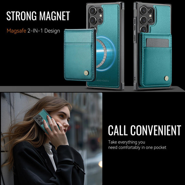 For Samsung Galaxy S24 Ultra 5G JEEHOOD J06 British Style RFID MagSafe Card Bag PU Phone Case(Green)