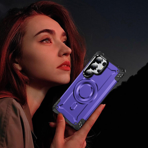 For Samsung Galaxy S24 Ultra 5G Lens Holder MagSafe Phone Case(Purple)