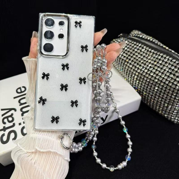For Samsung Galaxy S24 Ultra 5G Little Fresh Bow Neck Chain TPU Phone Case(Black)