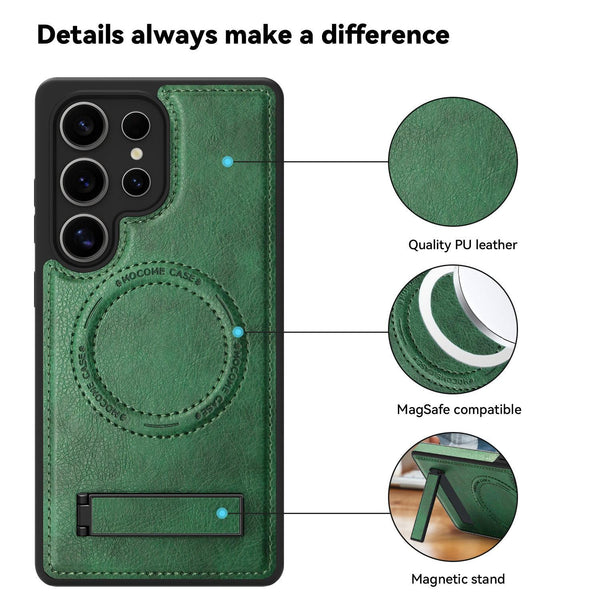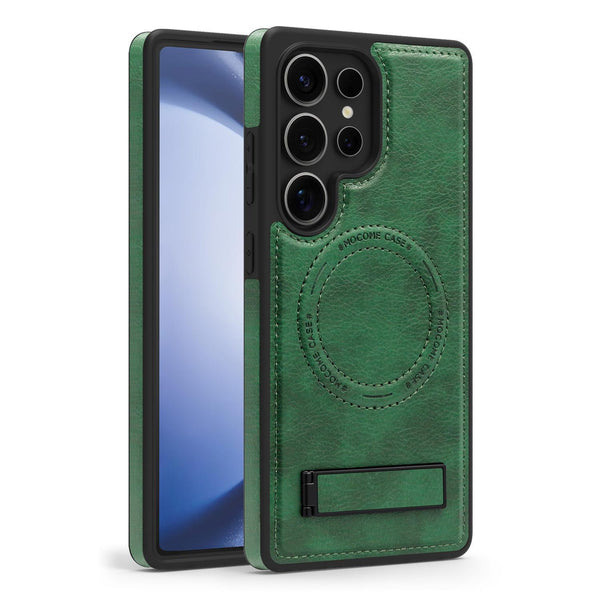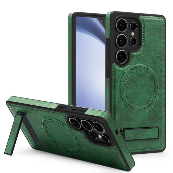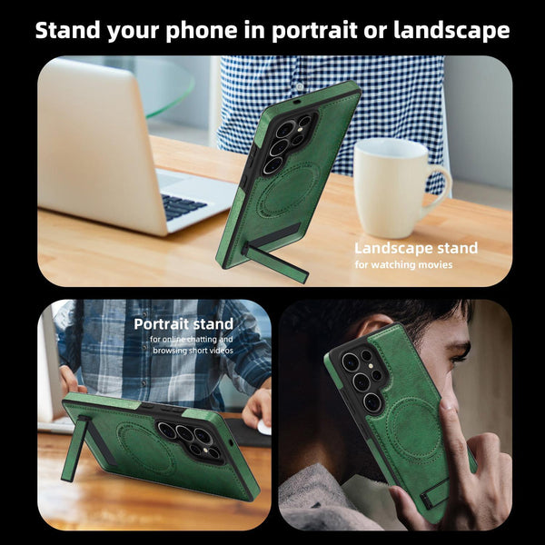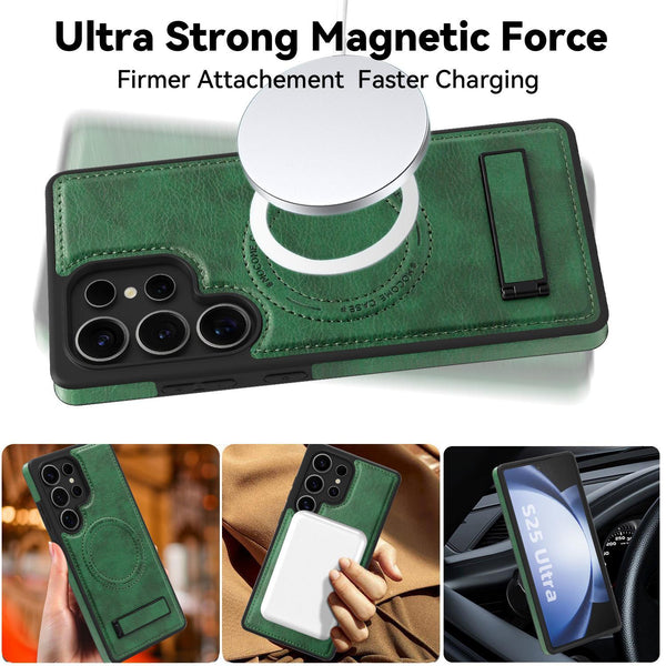 For Samsung Galaxy S24 Ultra 5G Multi-function Holder MagSafe PU Phone Case(Green)