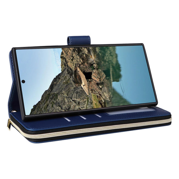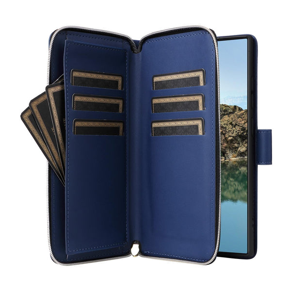 For Samsung Galaxy S24 Ultra 5G Nine-card Slots Zipper Wallet Bag Leather Phone Case(Blue)