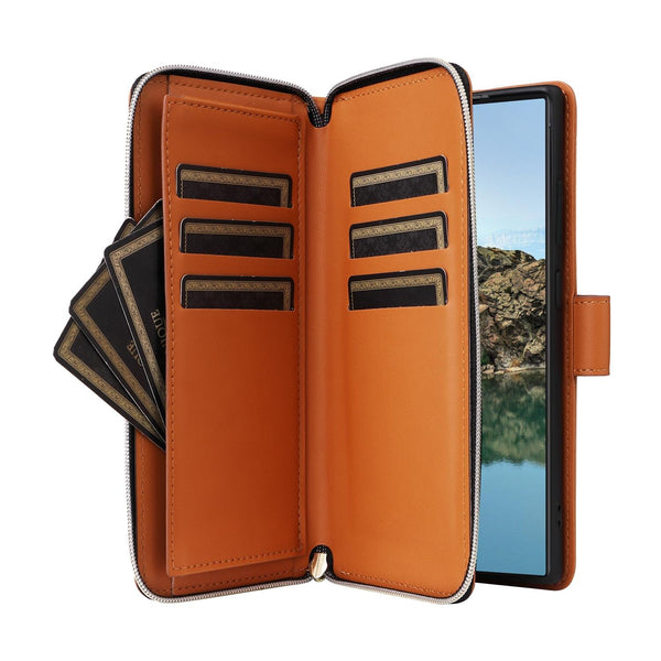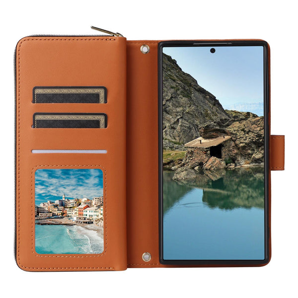 For Samsung Galaxy S24 Ultra 5G Nine-card Slots Zipper Wallet Bag Leather Phone Case(Brown)
