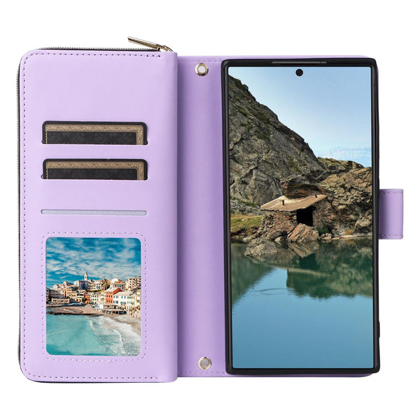 For Samsung Galaxy S24 Ultra 5G Nine-card Slots Zipper Wallet Bag Leather Phone Case(Purple)