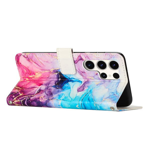 For Samsung Galaxy S24 Ultra 5G Painted Marble Pattern Leather Phone Case(Pink Purple)