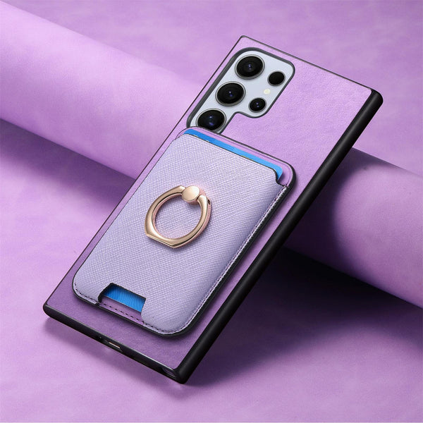 For Samsung Galaxy S24 Ultra 5G Retro Cross Leather Ring Vertical Insert Card Bag MagSafe Phone Case(Purple)