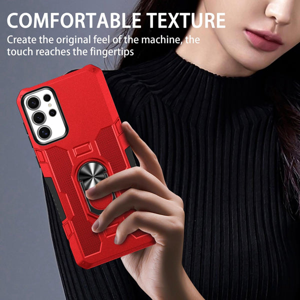 For Samsung Galaxy S24 Ultra 5G Ring Holder Armor Hybrid Phone Case(Red)