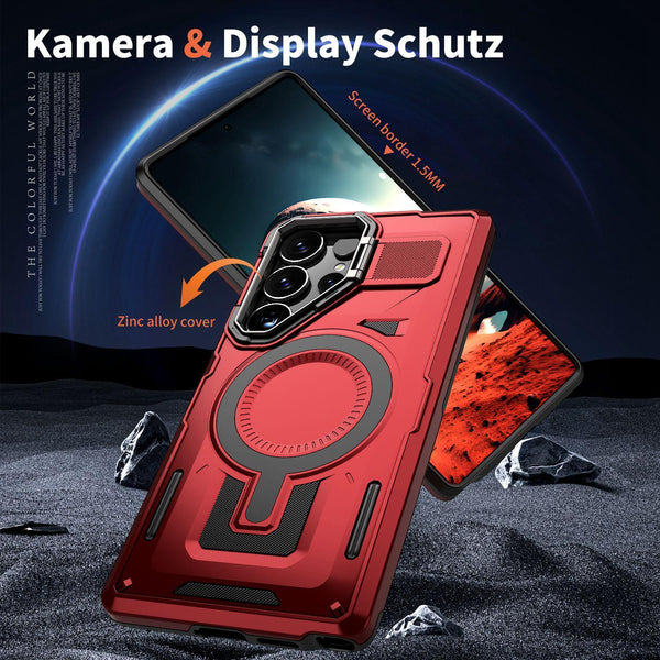 For Samsung Galaxy S24 Ultra 5G Shield Hollow Frame Holder MagSafe Phone Case(Red)