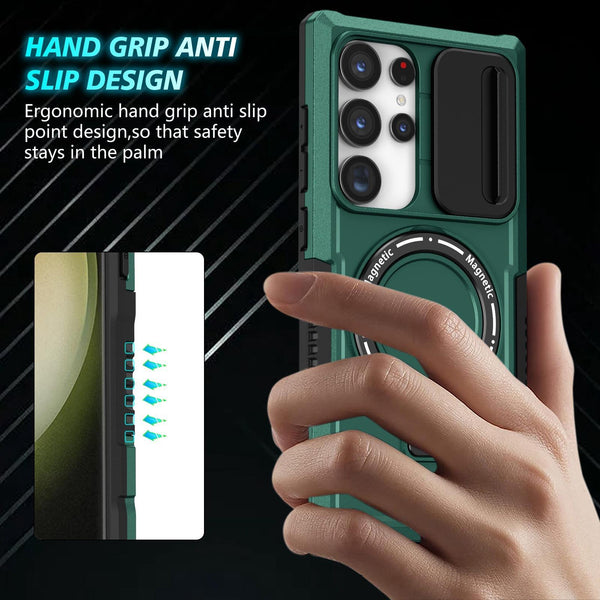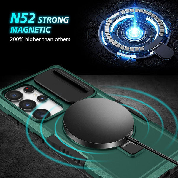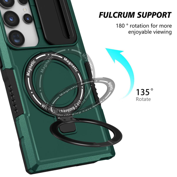 For Samsung Galaxy S24 Ultra 5G Sliding Camshield MagSafe Holder TPU Hybrid PC Phone Case(Deep Green)