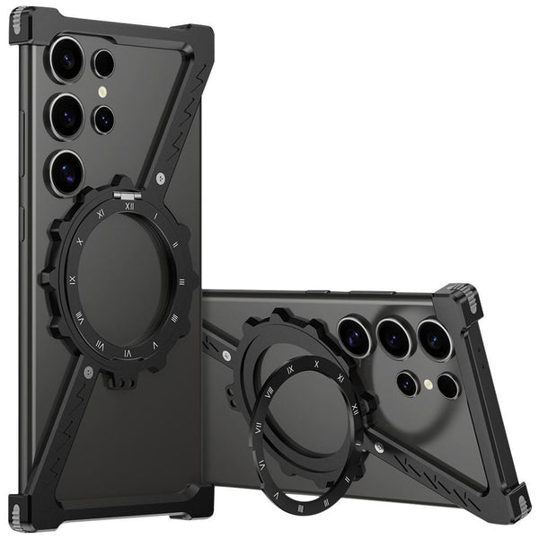 For Samsung Galaxy S24 Ultra 5G Z-shaped Frameless Metal 360 Holder MagSafe Phone Case(Black)