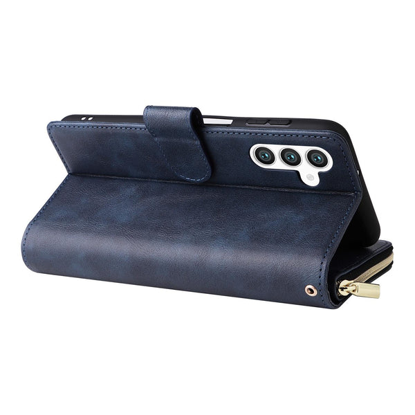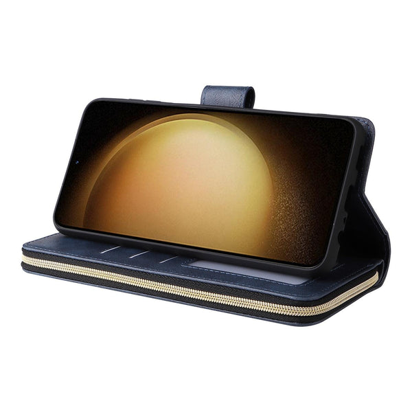 For Samsung Galaxy S25+ 5G 9-Card Slots Zipper Wallet Bag Leather Phone Case(Blue)