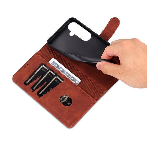 For Samsung Galaxy S25 5G AZNS Skin Feel Calf Texture Flip Leather Phone Case(Brown)