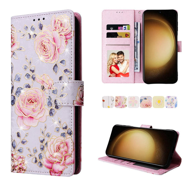 For Samsung Galaxy S25+ 5G Bronzing Painting RFID Leather Phone Case(Pastoral Rose)