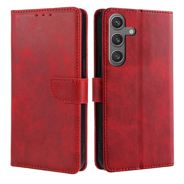 For Samsung Galaxy S25 5G Calf Texture Buckle Flip Leather Phone Case(Red)