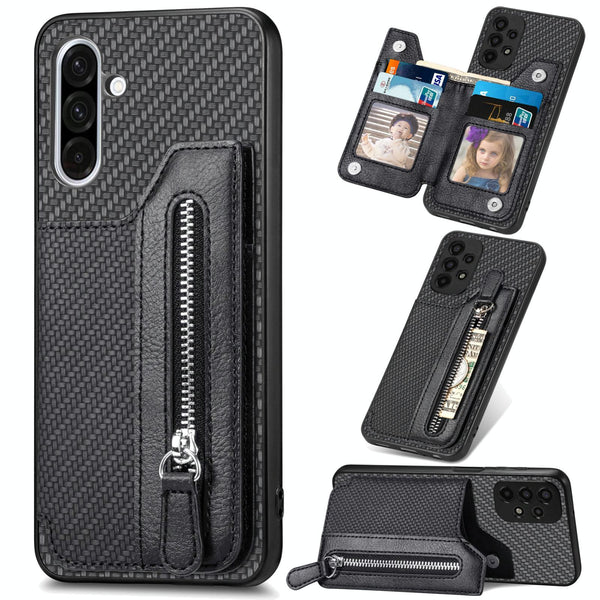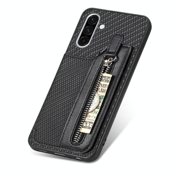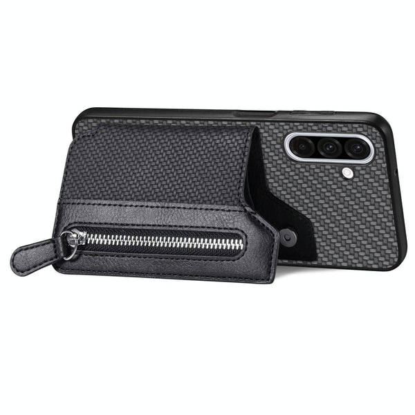 For Samsung Galaxy S25 5G Carbon Fiber Horizontal Flip Zipper Wallet Phone Case(Black)