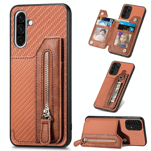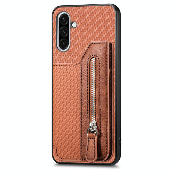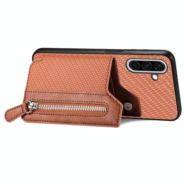 For Samsung Galaxy S25 5G Carbon Fiber Horizontal Flip Zipper Wallet Phone Case(Brown)