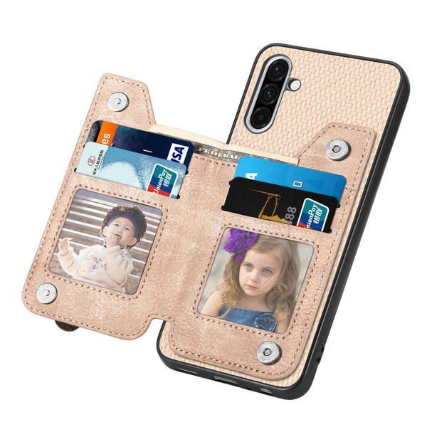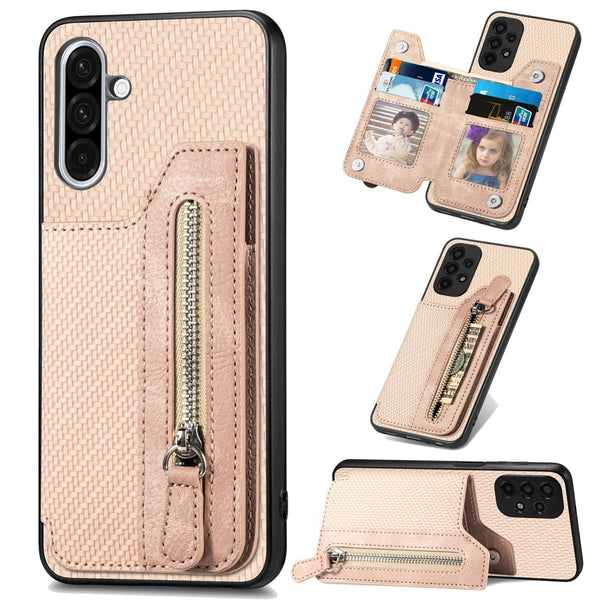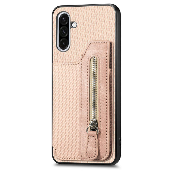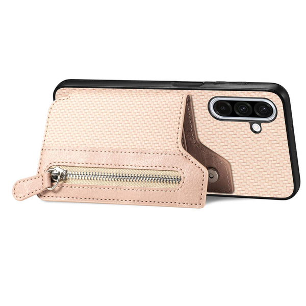 For Samsung Galaxy S25+ 5G Carbon Fiber Horizontal Flip Zipper Wallet Phone Case(Khaki)