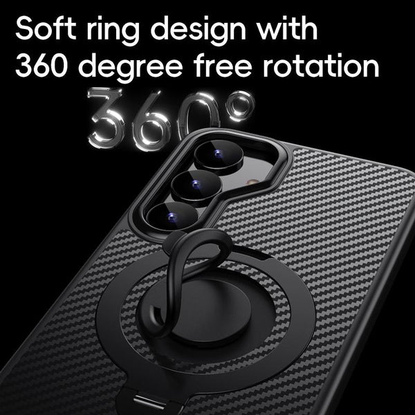 For Samsung Galaxy S25 5G Carbon Fiber MagSafe Phone Case with 360 Degree Rotating Holder(Black Grey)