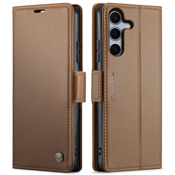 For Samsung Galaxy S25 5G CaseMe 023 Butterfly Buckle Litchi Texture RFID Anti-theft Leather Phone Case(Brown)