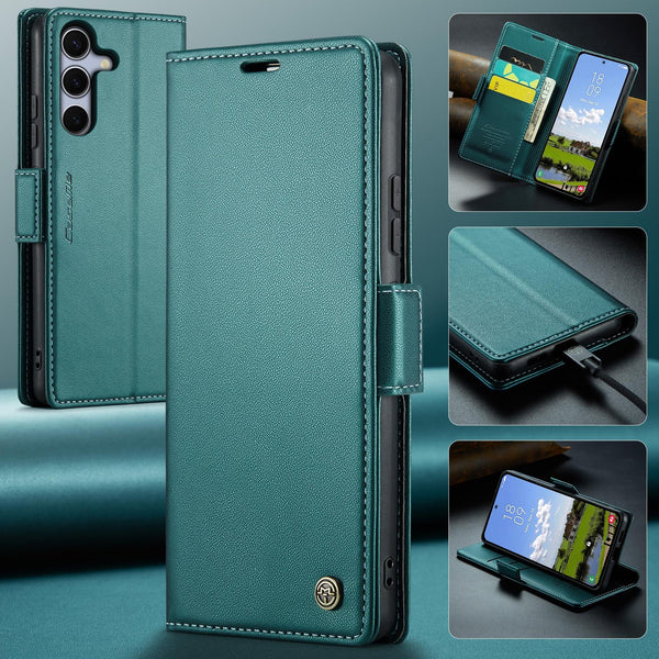 For Samsung Galaxy S25 5G CaseMe 023 Butterfly Buckle Litchi Texture RFID Anti-theft Leather Phone Case(Green)