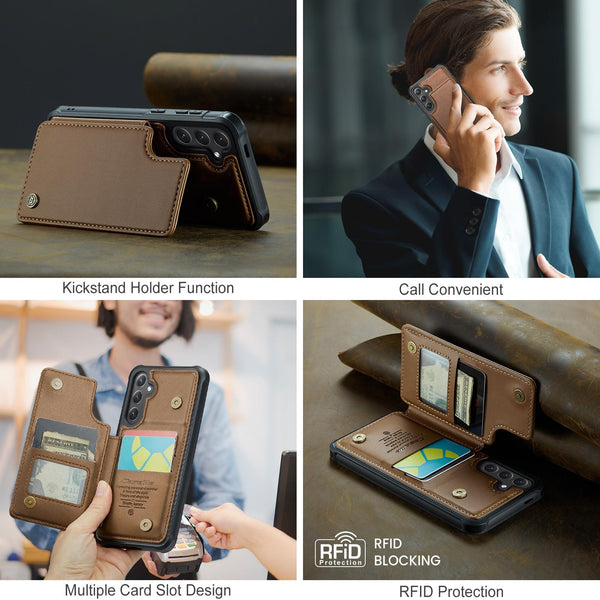 For Samsung Galaxy S25 5G CaseMe C22 Card Slots Holder RFID Anti-theft Phone Case(Brown)