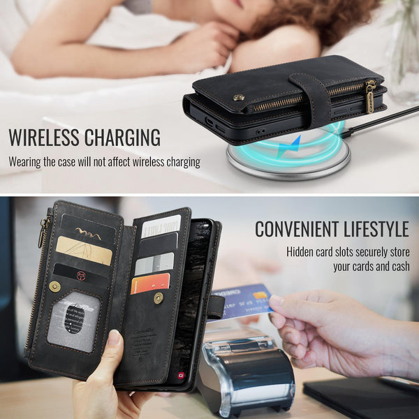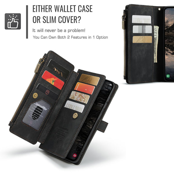 2. Functional Wallet Design: Includes card slots, 1 cash slot, and a zipper wallet for convenient storage, combining a wallet and phone case in one.