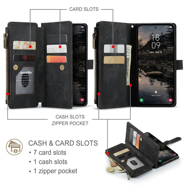 For Samsung Galaxy S25 5G CaseMe C30 Card Slots Zipper Wallet Leather Phone Case(Black)
