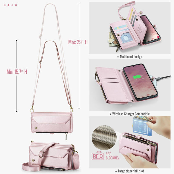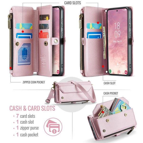 For Samsung Galaxy S25 5G CaseMe C36 Card Slots Zipper Wallet RFID Anti-theft Leather Phone Case(Pink)