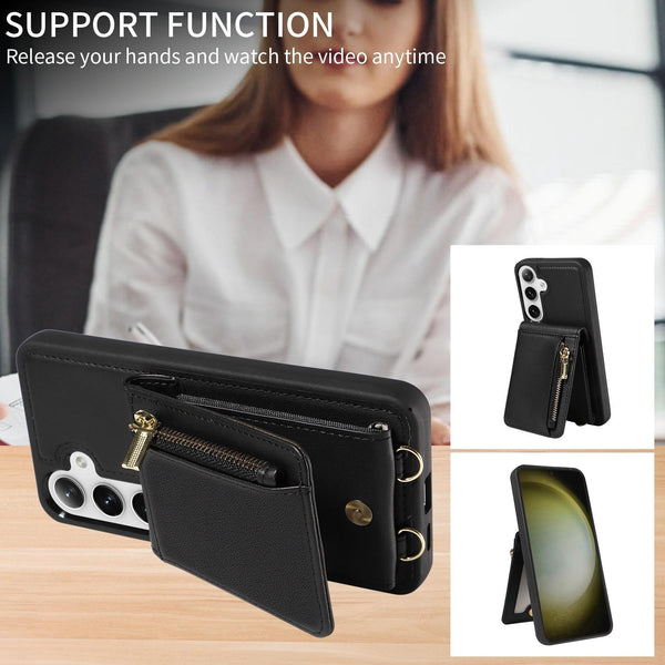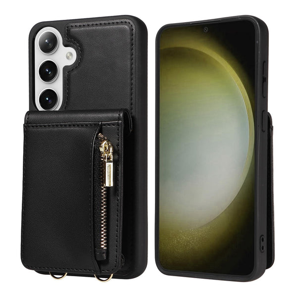 For Samsung Galaxy S25+ 5G Crossbody Lanyard Zipper Wallet Leather Phone Case(Black)