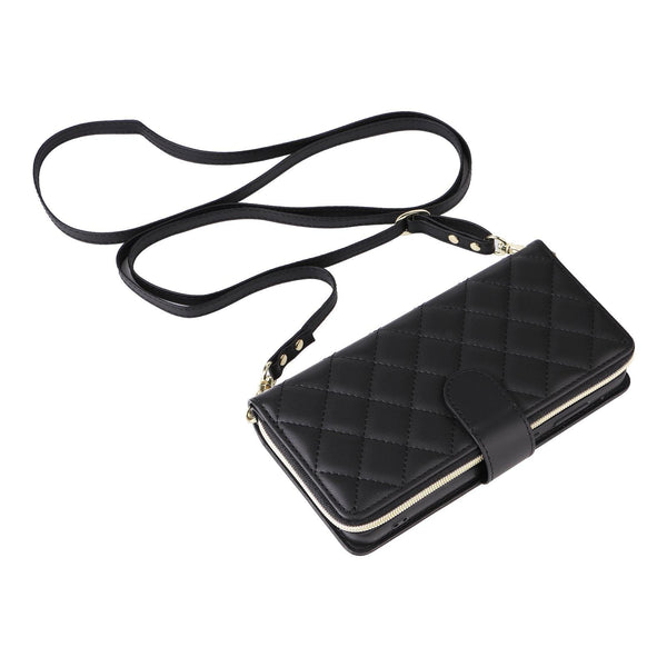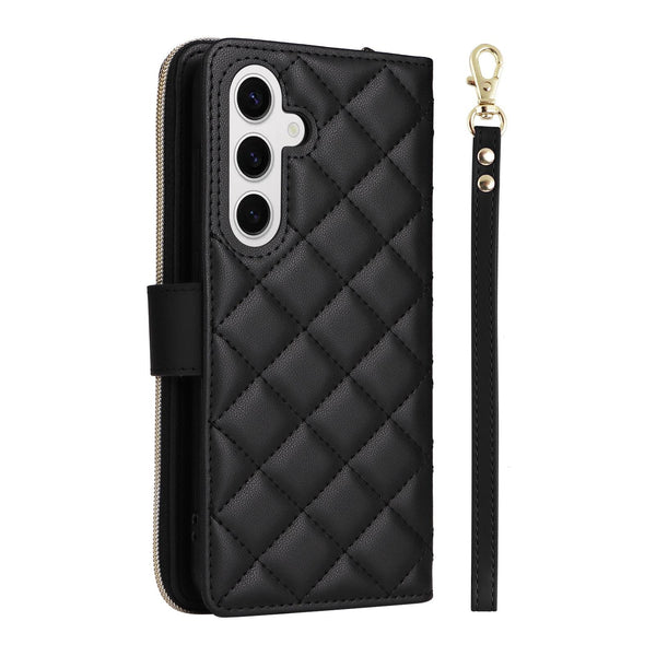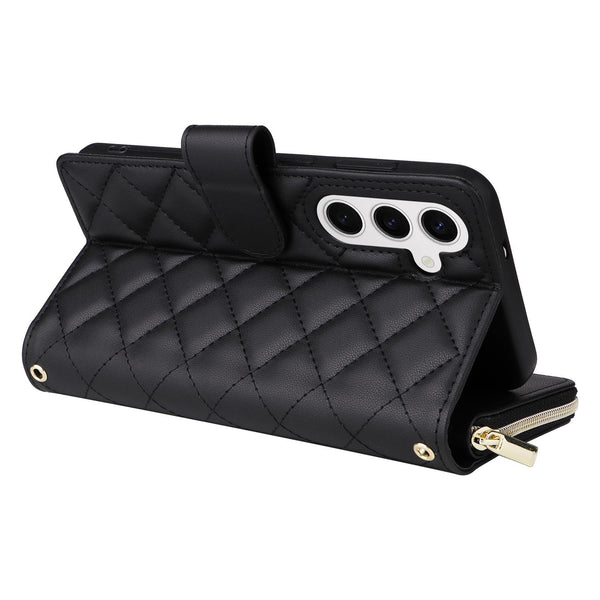 For Samsung Galaxy S25 5G Crossbody Rhombic Zipper Tower Buckle Leather Phone Case with Lanyard(Black)