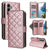 For Samsung Galaxy S25+ 5G Crossbody Rhombic Zipper Tower Buckle Leather Phone Case with Lanyard(Rose Gold)