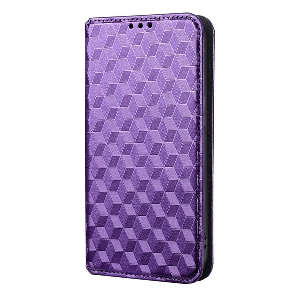 For Samsung Galaxy S25+ 5G Cubic Grid Texture Flip Leather Phone Case(Purple)