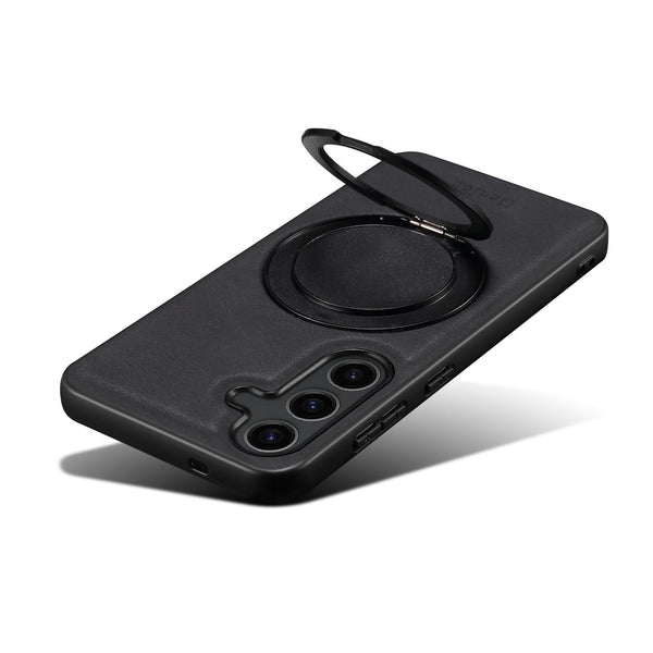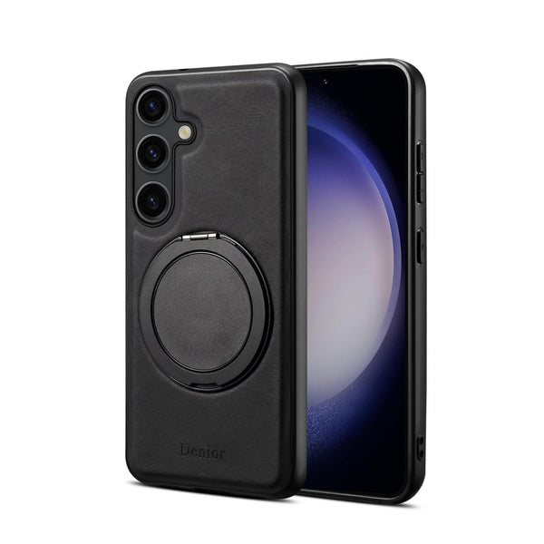 For Samsung Galaxy S25 5G Denior A14 Skin Feel Rotating Holder MagSafe Phone Case(Black)