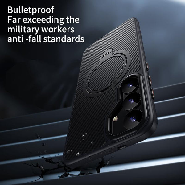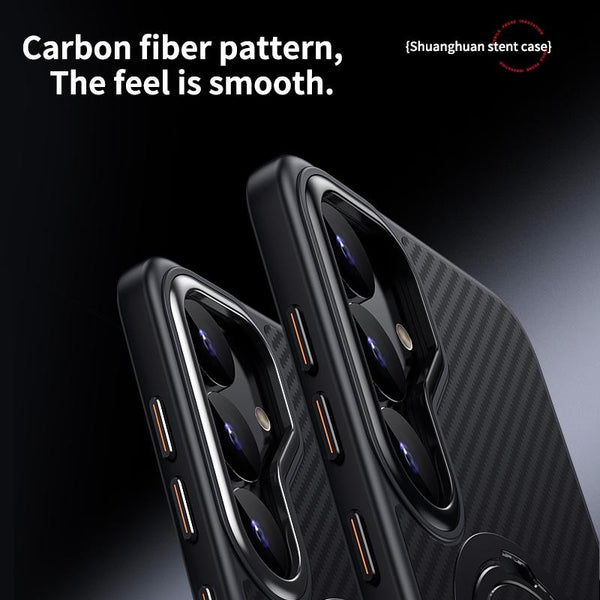 For Samsung Galaxy S25+ 5G Double Ring MagSafe Holder Carbon Fibre Phone Case(Silver)